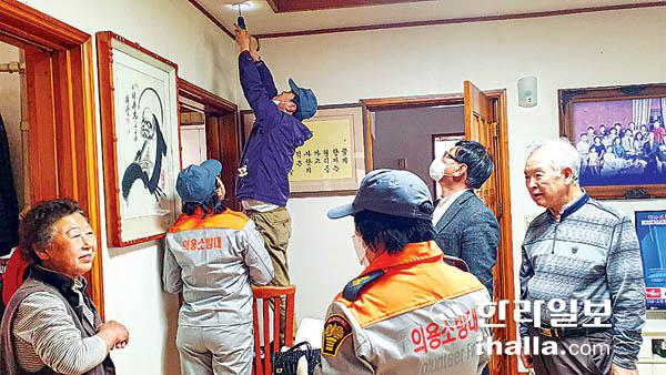 이날 연동119센터와 연동의용소방대는 공동으로 구매한 소화기 및 단독경보형감지기를 설치했다.