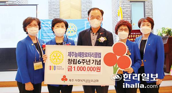 제주늘해랑로타리클럽(회장 이경심)은 지난 24일 제주시 화목원에서 창립 6주년 기념식을 개최하고 제주사회복지공동모금회(회장 김남식)에 성금 100만원을 기탁했다.