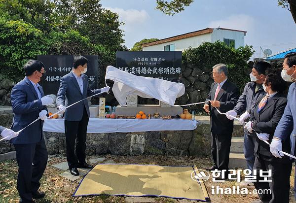 애국지사 조무빈 선생의 송덕비 제막식이 29일 선생의 출생지인 제주시 한경면 낙천리 마을회관에서 열렸다. 한양조씨 낙천파 문중회(회장 조정배) 주최로 열린 이날 제막식은 문중과 내빈 등이 참석한 가운데 조무빈 선생의 공적소개와 함께 경과 설명, 참배 순으로 진행했다. 조무빈 선생의 송덕비는 항일운동을 함께한 김여석 훈장의 송덕비 옆에 나란히 마련됐다.