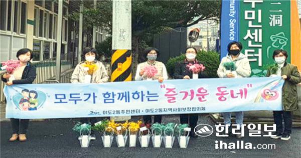 제주시 이도2동지역사회보장협의체(위원장 변순옥)와 이도2동주민센터(동장 박창현)는 지난달 29일 사회복지법인 일배움터(원장 오영순)와 협약을 통해 2021년 제2회 모두가 함께하는 즐거운 동네 특화사업을 추진했다.