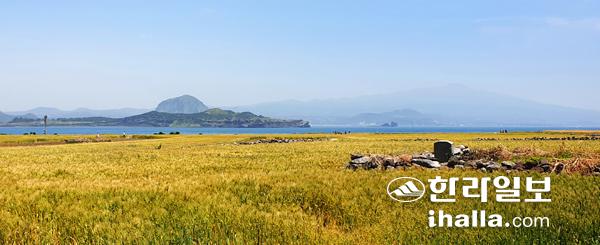 6일 파란하늘 아래 가파도 보리물결과 한라산, 송악산, 산방산이 함께 어우러지며 수채화 같은 풍경을 자아내고 있다. 이상국기자