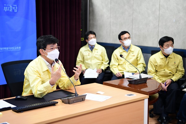 9일 이석문 교육감 주재 관련 학교장 긴급 영상회의가 열리고 있다. 사진=제주도교육청 제공