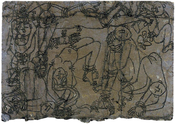 이중섭의 '묶인 사람들'(1950년대 은지화). 사진=국립현대미술관 제공