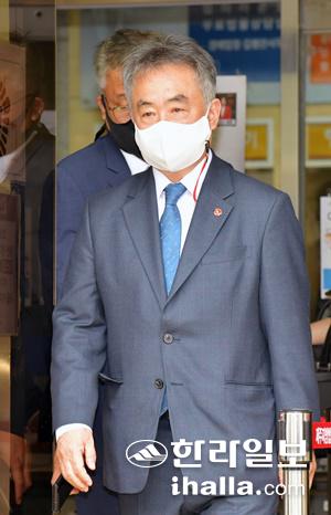 12일 선고후 법원 나서는 민주당 송재호 의원. 강희만기자