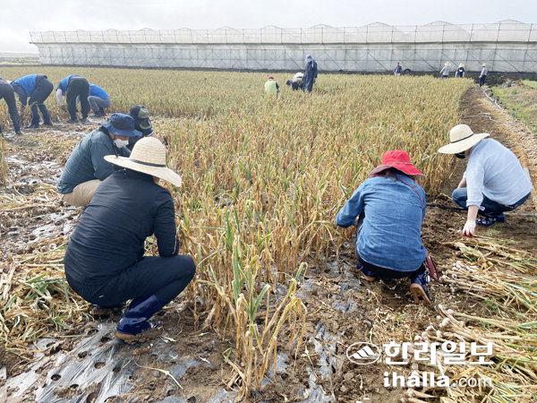 이번 활동은 코로나19로 인해 외국인 근로자 및 도내·외 인력 수급 불안정으로 어려움을 겪는 마늘 농가를 돕기 위해 실시됐다.