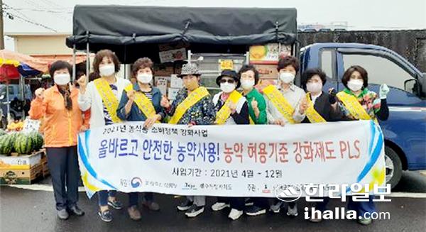 사단법인 한국부인회제주도지부(지부장 고순생)는 지난 16일 서귀포시 대정읍 민속오일시장에서 농림축산식품부와 제주도 지원으로 농약 허용 기준 강화 제도(PLS)를 홍보하는 캠페인을 진행했다.