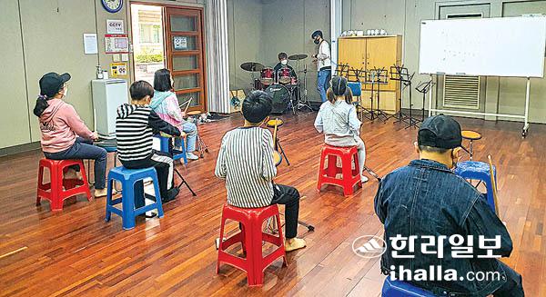 서귀포시 효돈동주민자치위원회(위원장 김문원)는 매주 토·일요일 지역 내 초등학생을 대상으로 하효 청소년문화의 집에서 드럼교실을 운영하고 있다.