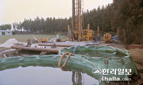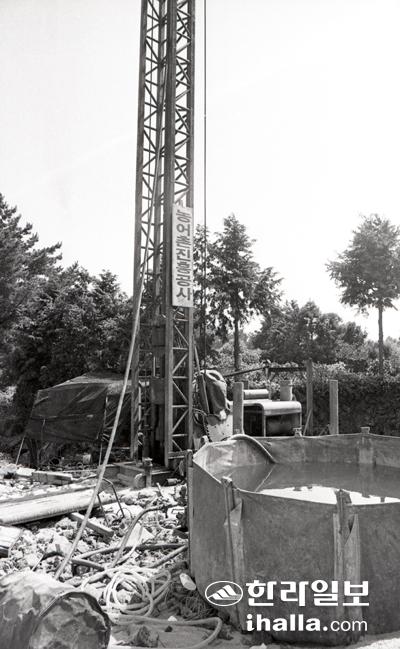 1997년 도내 한 중산간 지역에서 지하수 관정 굴착작업을 하고 있다. 사진=한라일보DB