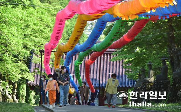 부처님 오신 날을 맞아 관음사 등 도내 각 사찰을 찾는 발길이 이어지고 있다. 강희만기자
