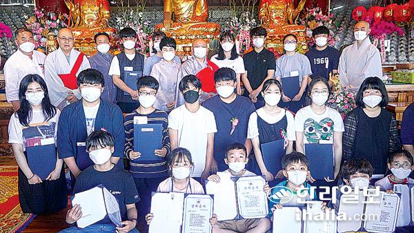 서귀포시 산방산 보문사 장학회(대표 진영행)는 지난 19일 부처님오신날을 맞아 도내 불자가정 청소년 26명에게 670만원의 장학금을 전달했다.