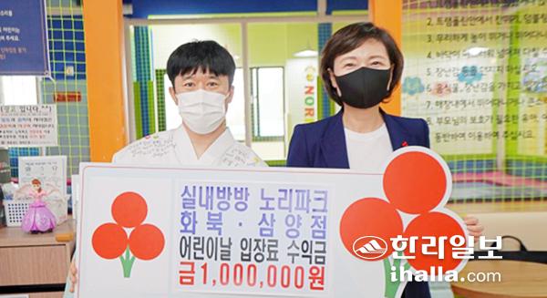실내방방 노리파크 화북·삼양점(대표 황연익)과 김주영 학생(제주관광대 치기공과 2학년), 해동검도 화북도장은 지난 20일 제주시 화북동 소재 노리파크에서 어려운 이웃을 위해 사용해 달라며 성금 100만원을 기탁했다.