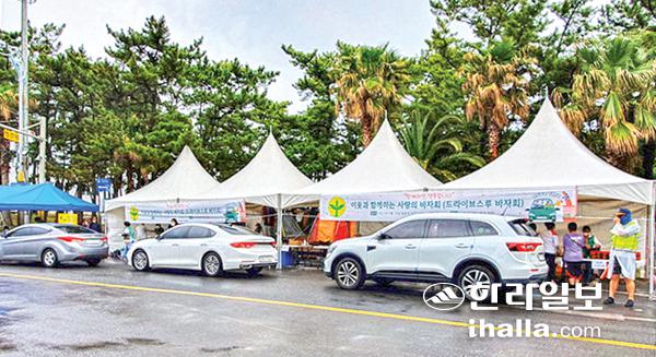 제주시 이호동새마을부녀회(회장 김갑생)는 최근 이호테우해수욕장에서 드라이브스루 사랑의 바자회를 개최했다. 이날 부녀회원들이 만든 열무김치, 떡갈비 등을 판매해 수익금은 어려운 이웃들에 전달될 예정이다.