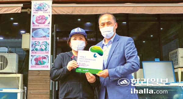 초록우산 어린이재단 제주지역본부(본부장 김희석)와 제주후원회(회장 장행우)는 지난 21일 나눔릴레이 캠페인에 동참하는 사랑물(대표 고희신, 제주시 일도2동)에 나눔현판을 전달했다.