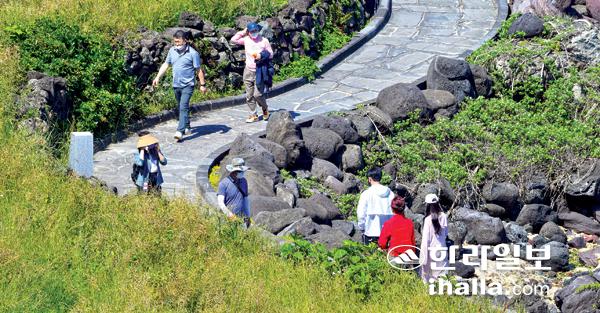 맑은 날씨를 보인 24일 관광객들이 제주시 애월읍 한담산책로를 걸으며 제주의 5월을 만끽하고 있다. 강희만기자