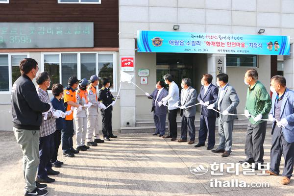서부소방서(서장 문동원)는 지난 25일 애월읍 소길리(이장 양성윤)와 26일 한경면 고산2리(이장 고덕양)를 '화재없는 안전마을'로 지정하고 지정식을 가졌다.