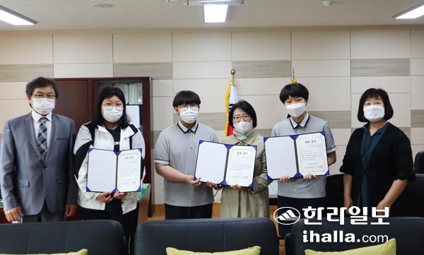 (재)경해장학복지재단(이사장 이경의)은 지난 22일 2021년도 경해장학복지재단 3기 인재육성의 일환으로 탐라영재관 학생과도내 학교장이 추천한 인재육성 장학생을 포함해 도내외 90명의 학생들에게 1억원의 장학금을 전달했다.