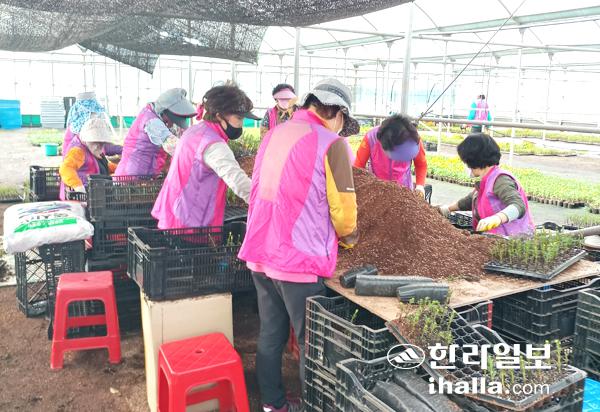 서귀포 여성중앙회 육묘장 꽃 옮겨심기