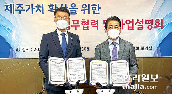 제주국제자유도시개발센터(이사장 문대림)와 서울제주도민회(회장 강한일)는 수도권 지역 제주 가치 확산과 향토발전을 위한 행사 및 사회공헌 활동 협력을 위해 26일 업무협약을 체결하고 JDC 사업설명회를 가졌다.
