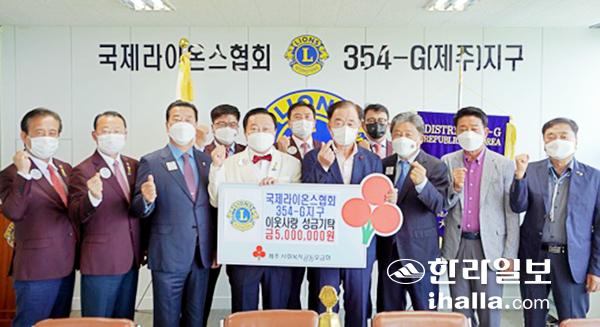 국제라이온스협회 354-G(제주)지구(총재 김창현)는 지난 25일 지구 사무실에서 이웃사랑 성금 500만원을 제주사회복지공동모금회(회장 김남식)에 기탁했다.