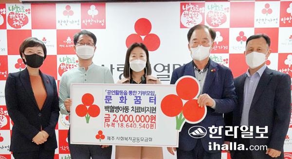 문화꿈터(회장 양안섭)는 지난 26일 제주사회복지공동모금회(회장 김남식) 사무실을 찾아 공연활동을 통해 모인 수익금 200만원을 기탁했다.