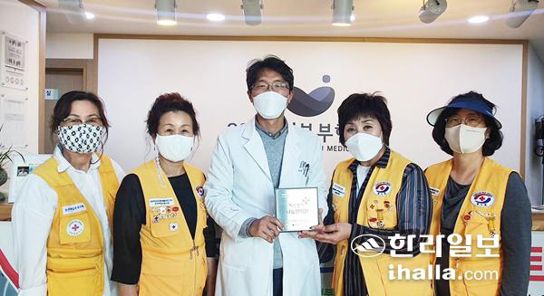 경희부부한의원(대표원장 정덕희)은 지난 26일 대한적십자사제주지사(회장 오홍식)에서 실시하는 희망나눔 명패 달기 캠페인에 동참했다. 제주시 조천읍 소재 경희부부한의원은 이번 동참으로 매월 일정액을 기부하게 된다.