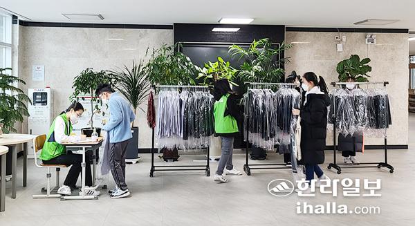 오름중학교(교장 김한국)는 27일 학생자치회 주관으로 교복(하복)물려주기 행사를 진행했다. 학교 관계자는 "이번 행사를 통해 자원을 절약하고 자연과 공존하는 교육에 한 몫 하고 있다"고 전했다.