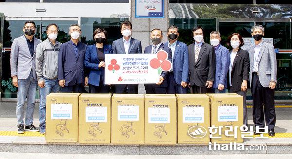 국제로타리3662지구 남제주로타리클럽(회장 김창수)은 지난 25일 서귀포시청을 방문해 지역 내 거동이 불편한 어르신을 위해 써달라며 제주사회복지공동모금회를 통해 어르신 보행보조기 22대(202만원 상당)를 기탁했다.