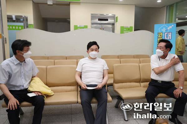 [기사수정:28일 오후 5시] 원희룡 제주특별자치도지사와 좌남수 도의회 의장, 이석문 도 교육감은 "백신 접종은 일상 회복을 향한 출발점"이라며 코로나19 예방접종에 대한 도민 참여를 호소했다.