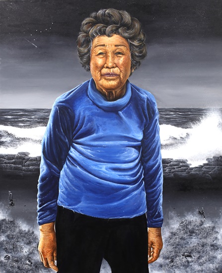 김산의 '바람의 행로(行路)-좀녀 송춘자'(한지에 아크릴, 2021).