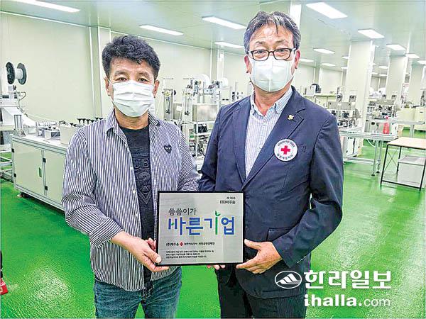 (주)제주숨(대표 황용석)은 지난 28일 대한적십자사제주특별자치도지사(회장 오홍식)에서 실시하는 '씀씀이가 바른기업'에 나눔문화위원회(위원장 양창홍)의 홍보캠페인에 동참해 지역사회를 위한 따뜻한 나눔 실천을 약속했다.