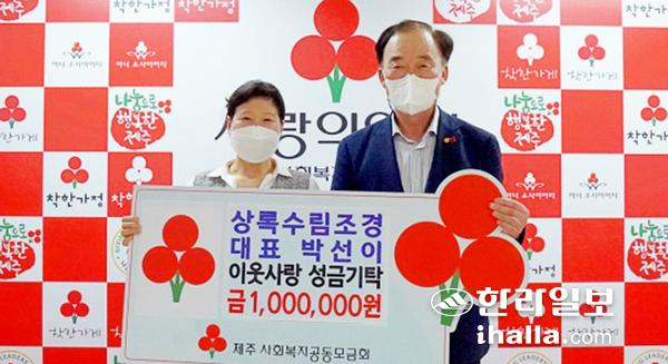 박선이 상록수림조경 대표는 지난 27일 제주사회복지공동모금회(회장 김남식)를 찾아 이웃 사랑 성금 100만원을 기탁했다. 이번 성금은 박선이 대표가 도내 어려운 노인들을 위해 마련한 것으로, 노인요양원 '정효원'으로 전달돼 노인 의료환경 개선에 사용될 예정이다.