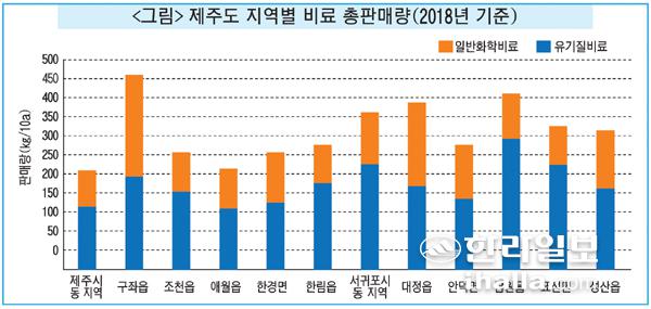 제주시 애월읍부터 한림읍·한경면 지역은 비료판매량이 적은 지역으로 나타났는데 이 지역은 가축분뇨 액비나 퇴비를 활용하거나 토질이 비화산 회토지역이기 때문으로 분석되고 있다.