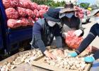3일 오전 농협본부 야외주차장에 마련한 직거래장터에는 일찍부터 마늘을 구입하려는 시민들이 몰려들어 긴 줄이 만들어졌다. 강희만기자