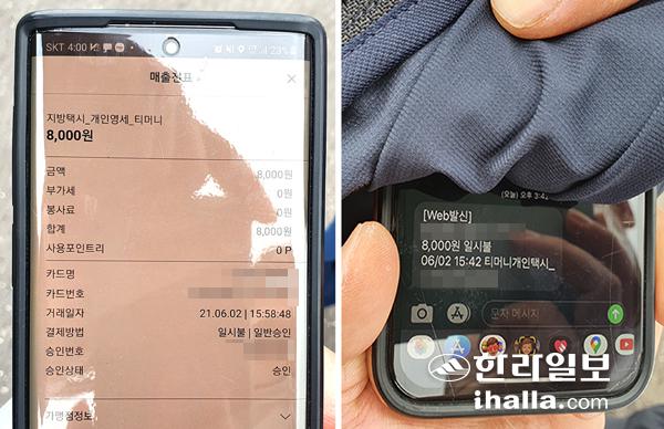 2일 관음사에서 탄 택시승객들의 영수증.