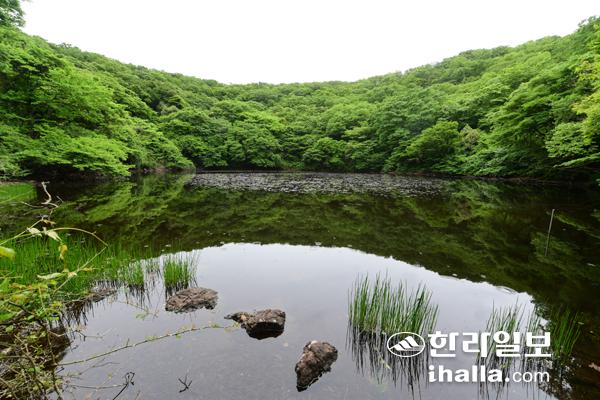 지난 30일 물찻오름이 만수를 이뤄 아름다운 장관을 연출하고 있다.