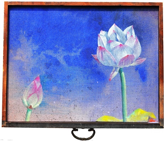 이강화는 '축제-엉겅퀴', '인연', '잉태' 등 고색창연한 문갑에 들꽃을 올려놓은 작품을 선보이고 있다. 들판에서 무심히 짓밟히는 작고 여린 존재들이지만 작가는 그것들에 눈길을 주고 세찬 물줄기에도 스러지지 않는 질긴 생명력을 표현했다.