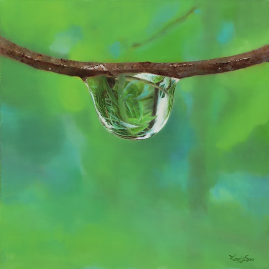 이영수는 유화 '윈디 데이', '내추럴 이미지' 연작으로 각기 다른 모습으로 다가오는 자연을 붓질했다. 이파리와 나뭇가지 끝 대롱대롱 매달린 자그만 이슬방울에 연둣빛 세상이 들어 있다. 작가는 자연과 함께하는 즐거운 붓질 속에서 때론 멈춰 서야 할 때를 생각한다고 했다.