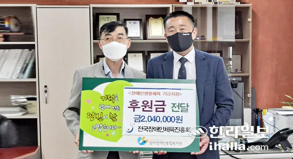 전국장애인체육진흥회(대표이사 류성무)는 지난 1일 탐라장애인종합복지관(관장 오승태)을 방문해 장애인 생활체육교실 운영하는 데 도움이 됐으면 한다며 후원금을 전달했다.