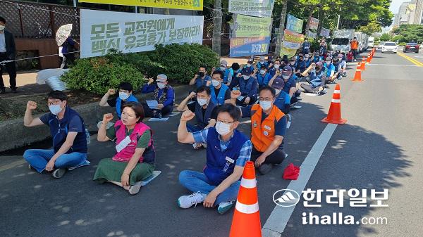 전국택배노동조합 제주지부 9일 제주도청 앞에 결의대회.