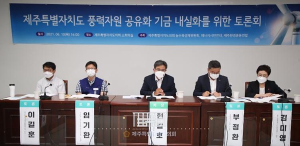 10일 열린 제주특별자치도 풍력자원 공유화 기금 내실화를 위한 토론회. 제주특별자치도의회 제공