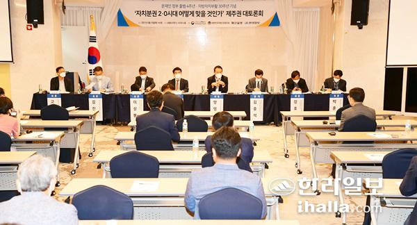 대통령소속 자치분권위원회와 대한민국지방신문협의회(대신협)는 10일 오후 2시 제주시리우스호텔 시리우스홀에서 '자치분권 2.0시대 어떻게 맞을 것인가'를 주제로 문재인 정부 출범 4주년 및 지방자치부활 30주년 기념 제주권 대토론회를 개최했다. 강희만 기자