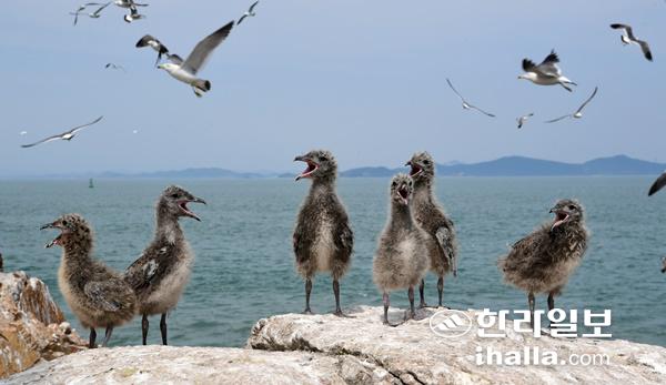 어미를 기다리는 괭이갈매기 새끼