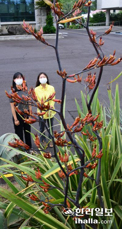 17일 서귀포시 난대아열대산림연구소 앞마당에 신서란 꽃이 활짝 피어 오가는 직원들의 눈길을 끌고 있다. 신서란은 열대성 다년생 백합과 식물로 그 꽃을 보기는 쉽지 않은 것으로 알려지고 있다. 강희만기자