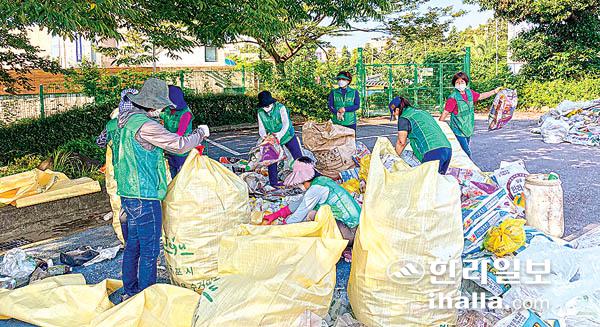 서귀포시 동홍동새마을부녀회(회장 김인숙)는 지난 20일 회원 10여명이 참여한 가운데 동홍동 산지물 인근에 위치한 영농폐기물 집하장에서 영농폐기물을 분류하고 집하장 주변 환경정비를 실시했다.