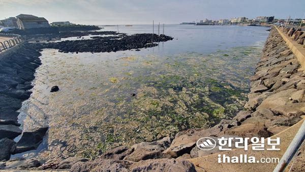 제주시 한림읍 한림해안도로 바닷가에 파래들이 가득 차 있다.