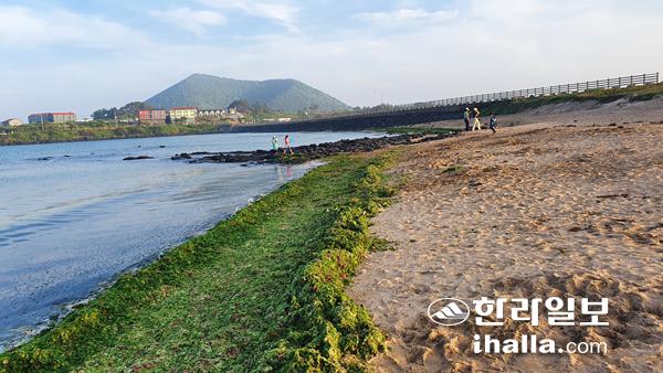 제주시 구좌읍 김녕해수욕장에 파래들이 뒤덮였다.