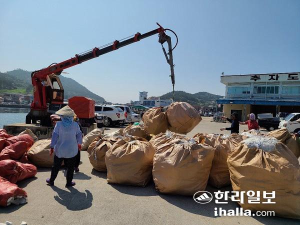 24일 제주시 추자면에 따르면 이달까지 해양쓰레기 40t을 수거했다. 지난 한 해에 수거된 해양쓰레기 50~60t에 거의 근접한 수준이다.