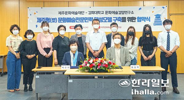 제주문화예술재단(이사장 이승택)과 경희대학교 문화예술경영연구소(소장 박신의)는 지난 24일 '제주형 문화예술 전문인력 양성모델 구축'을 위한 업무협약을 체결했다. 양 기관은 앞으로 문화예술 전문인력 양성을 위한 교육과정 개발과 운영, 문화예술 전문인력의 현장 진출 지원 등에 대한 업무 협력에 나설 예정이다.