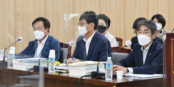 제주자치도의회 예결위에 출석한 박주용 부교육감(오른쪽). 제주자치도의회 제공