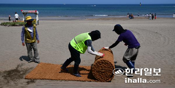 다음달 1일 도내 해수욕장 일제 개장을 앞두고 29일 제주시 이호테우해수욕장에서는 지역주민과 관계자들이 개장 준비로 분주하게 움직이고 있다. 강희만기자